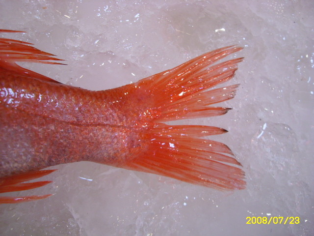 尾鰭赤紅色 末端具黑緣 呈淺叉形
